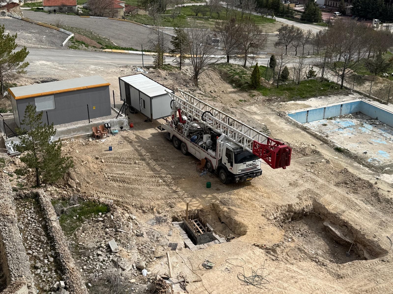 İhaleyi kazanan firma, kompleksin arka kısmında gerçekleştirilecek sondaj çalışmaları için hazırlıklarını tamamlarken, çalışmalar kapsamında 200 metre derinliğe kadar inilerek sıcak su arayacak.